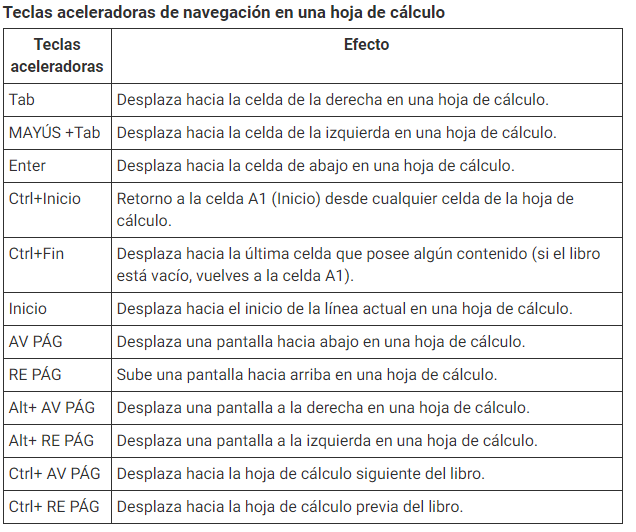 Para poder trabajar eficazmente en una hoja de cálculo, debes poder desplazarte a través de ella cómodamente. Además de los íconos y los comandos principales de los menús, un cierto número de teclas aceleradoras facilita la navegación.